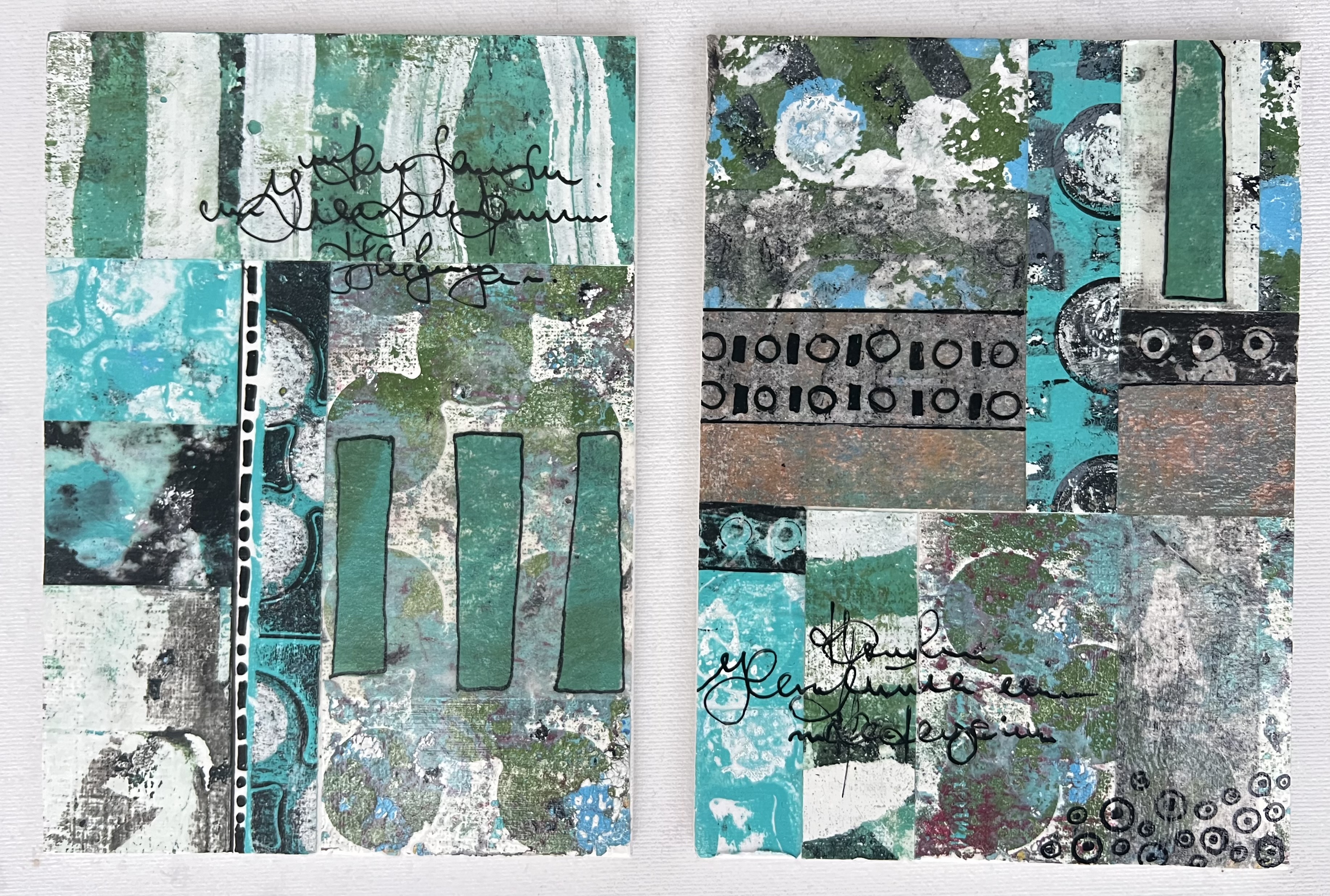 Naam: Zee van roestAfmeting: 15,5 x 20,5 cmMateriaalgebruik: Gelprint collage